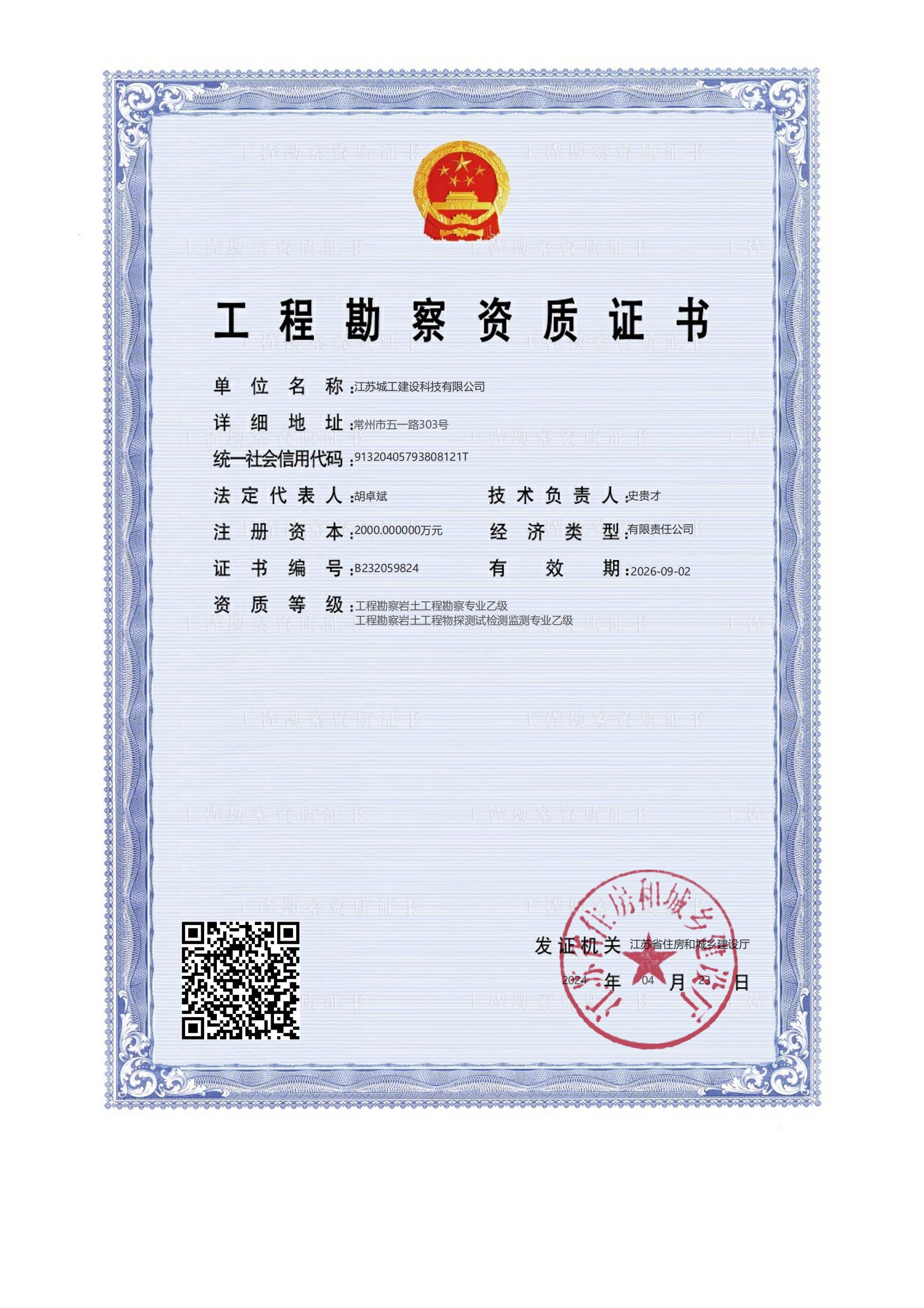 工程勘察資質證書2024