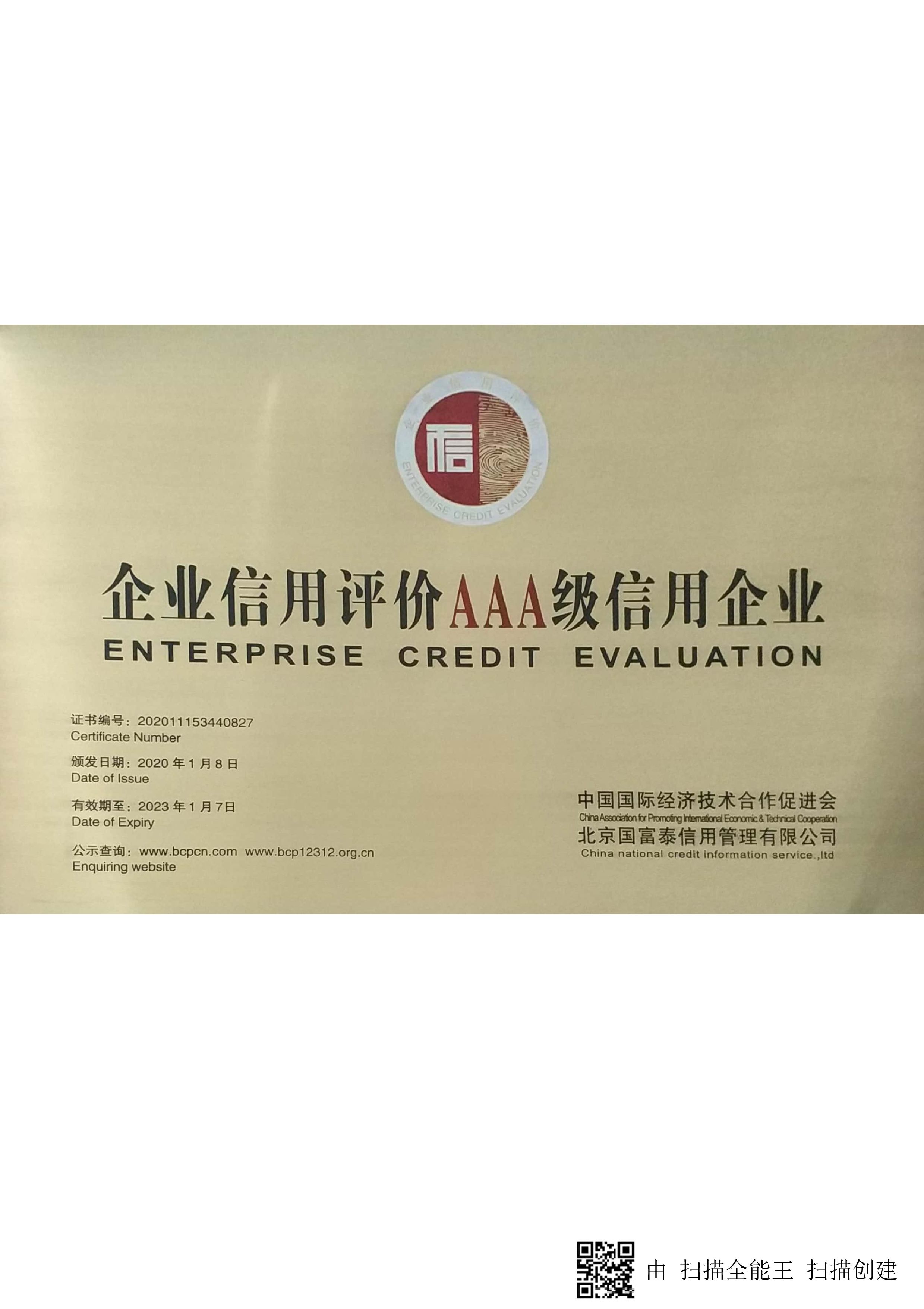 企業信用評價AAA級信用企業