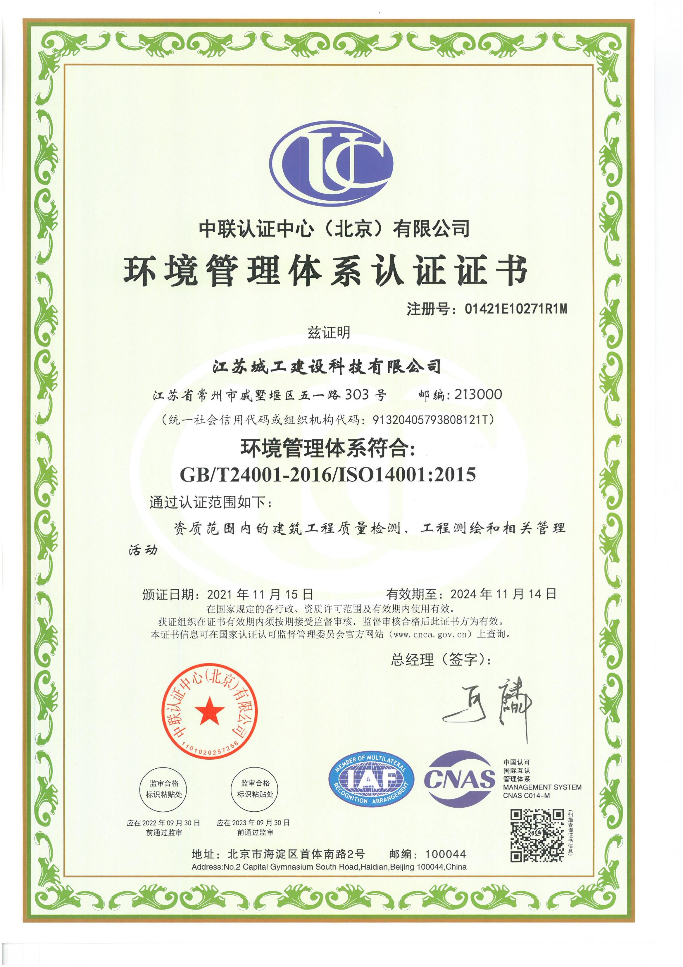 環境管理體系認證證書