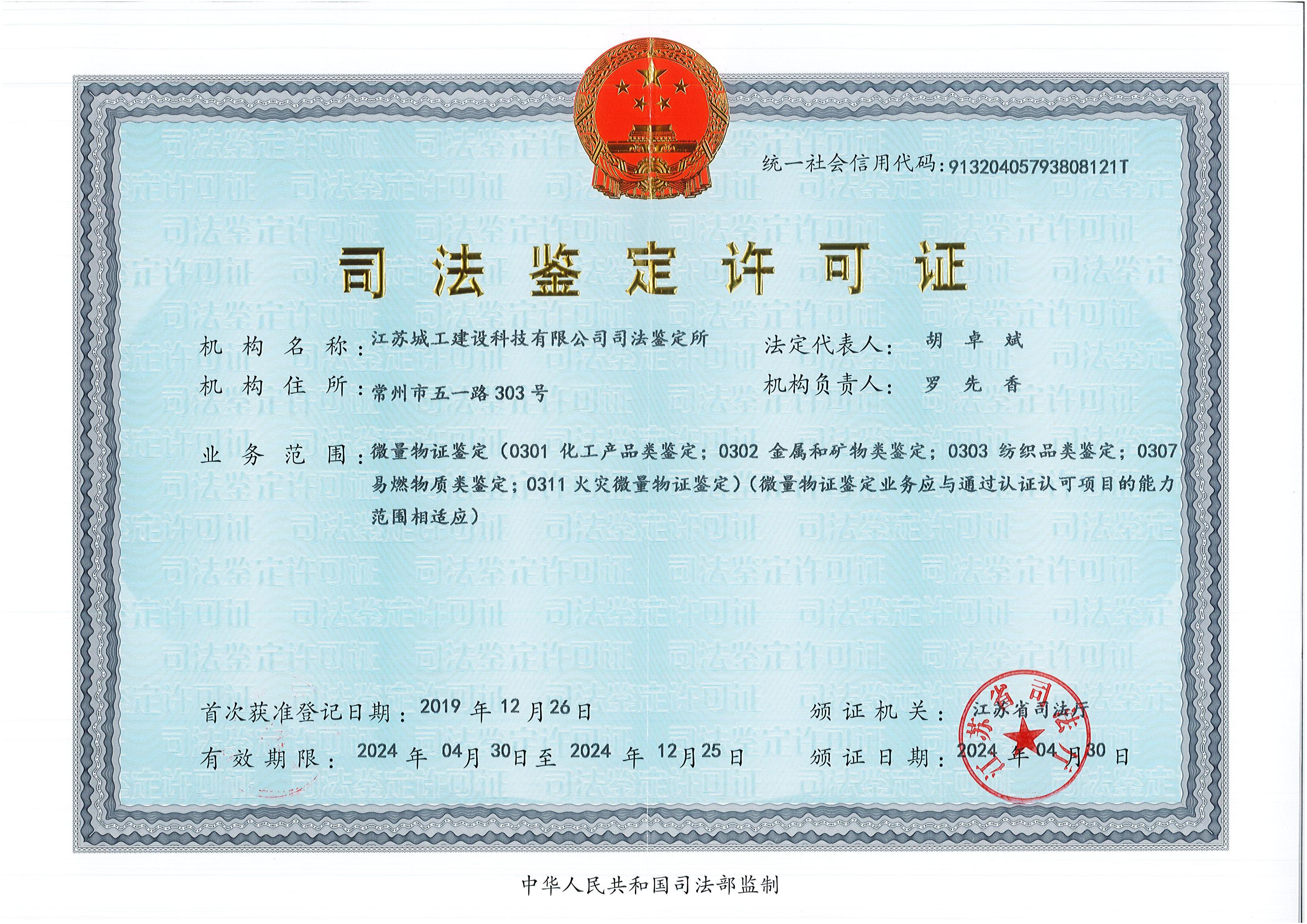 司法鑒定許可證(正)