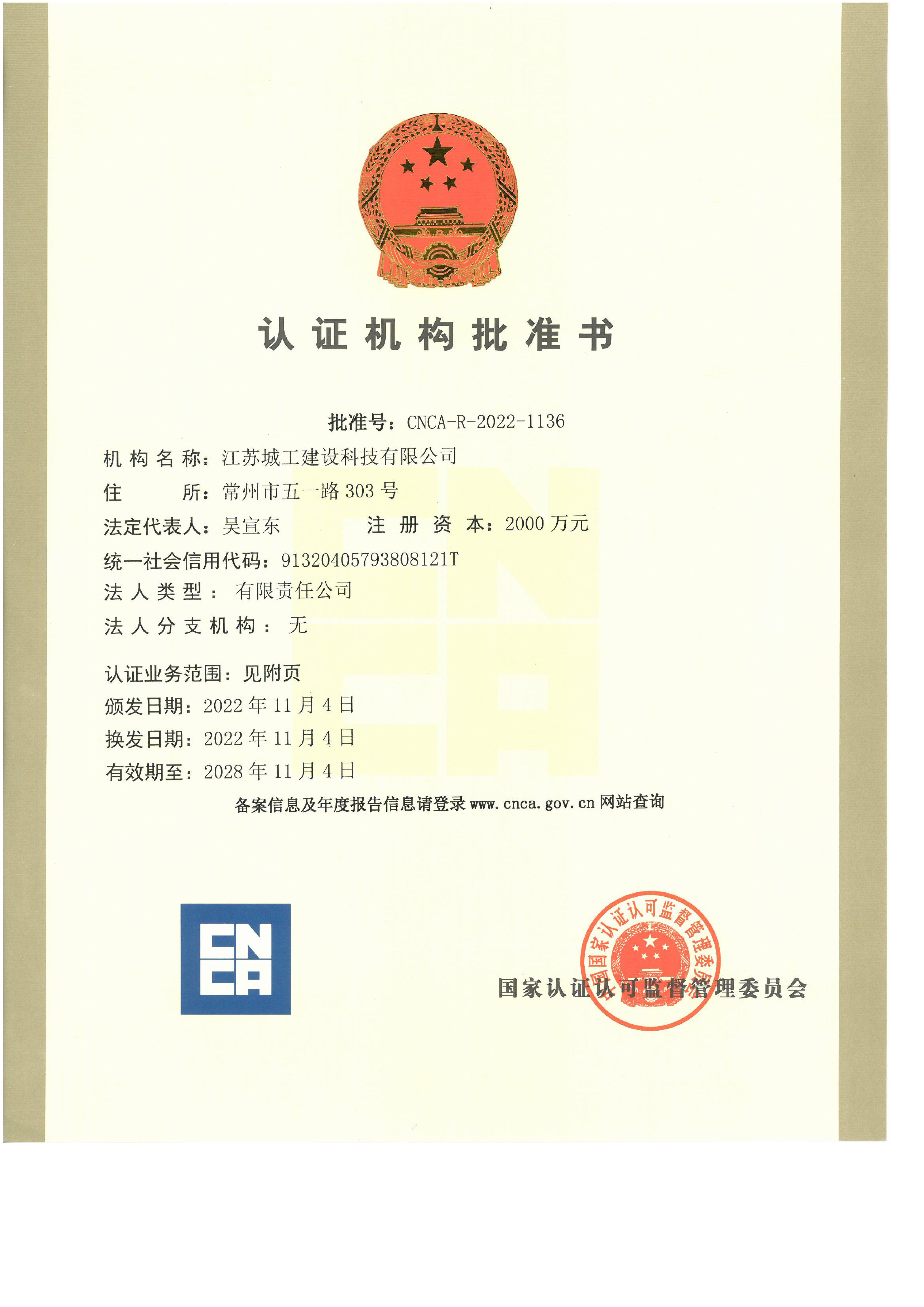 認證機構批準書